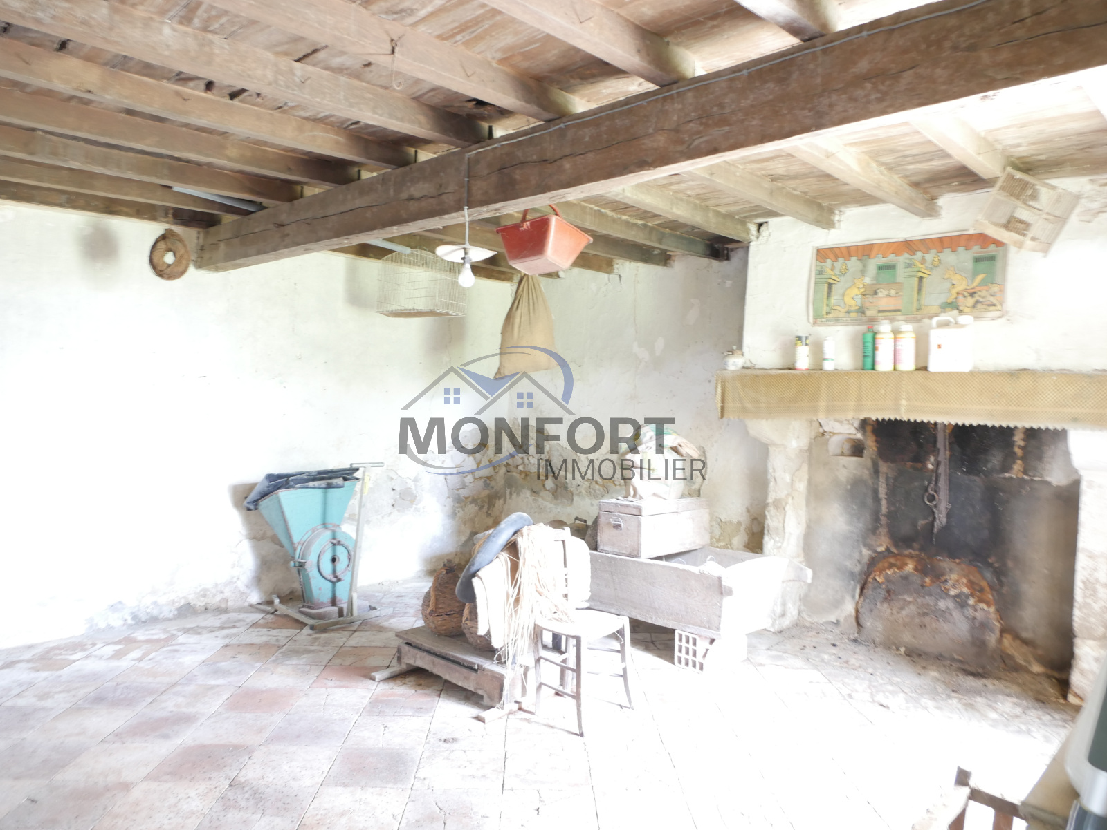 À l’intérieur, les éléments d’origine – pierres apparentes, volumes généreux et authenticité préservée – témoignent du caractère unique de cette maison chargée d’histoire.