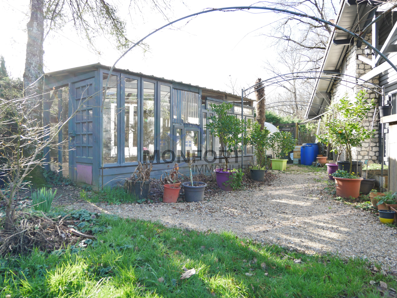 À l’extérieur, vous profiterez de deux terrasses, d’un garage et d’un abri de jardin faisant office de serre. La parcelle, largement boisée, dévoile un cadre bucolique mêlant fleurs, graminés et sous-bois, idéal pour les amoureux de la nature.