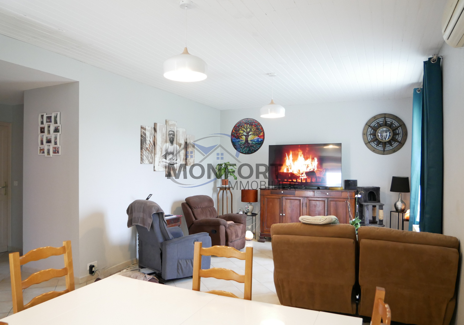 Entièrement rénovée, cette maison est implantée sur un terrain plat et arboré d'environ 2000 m². Elle offre actuellement 117 m² habitables, avec la possibilité d'aménager 2 chambres supplémentaires.