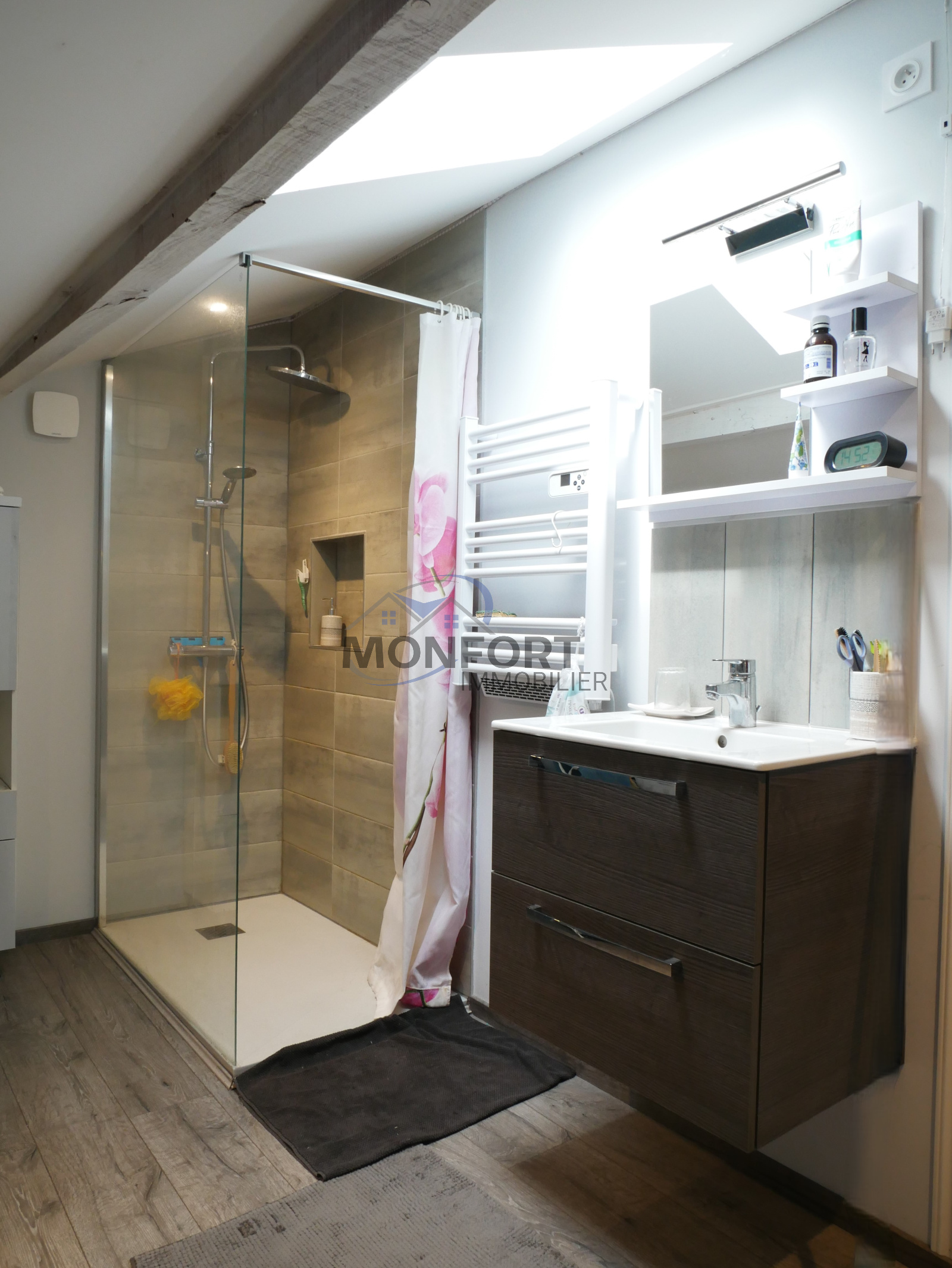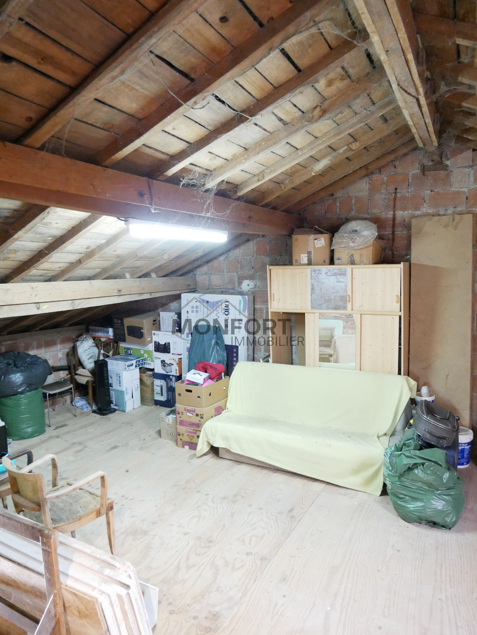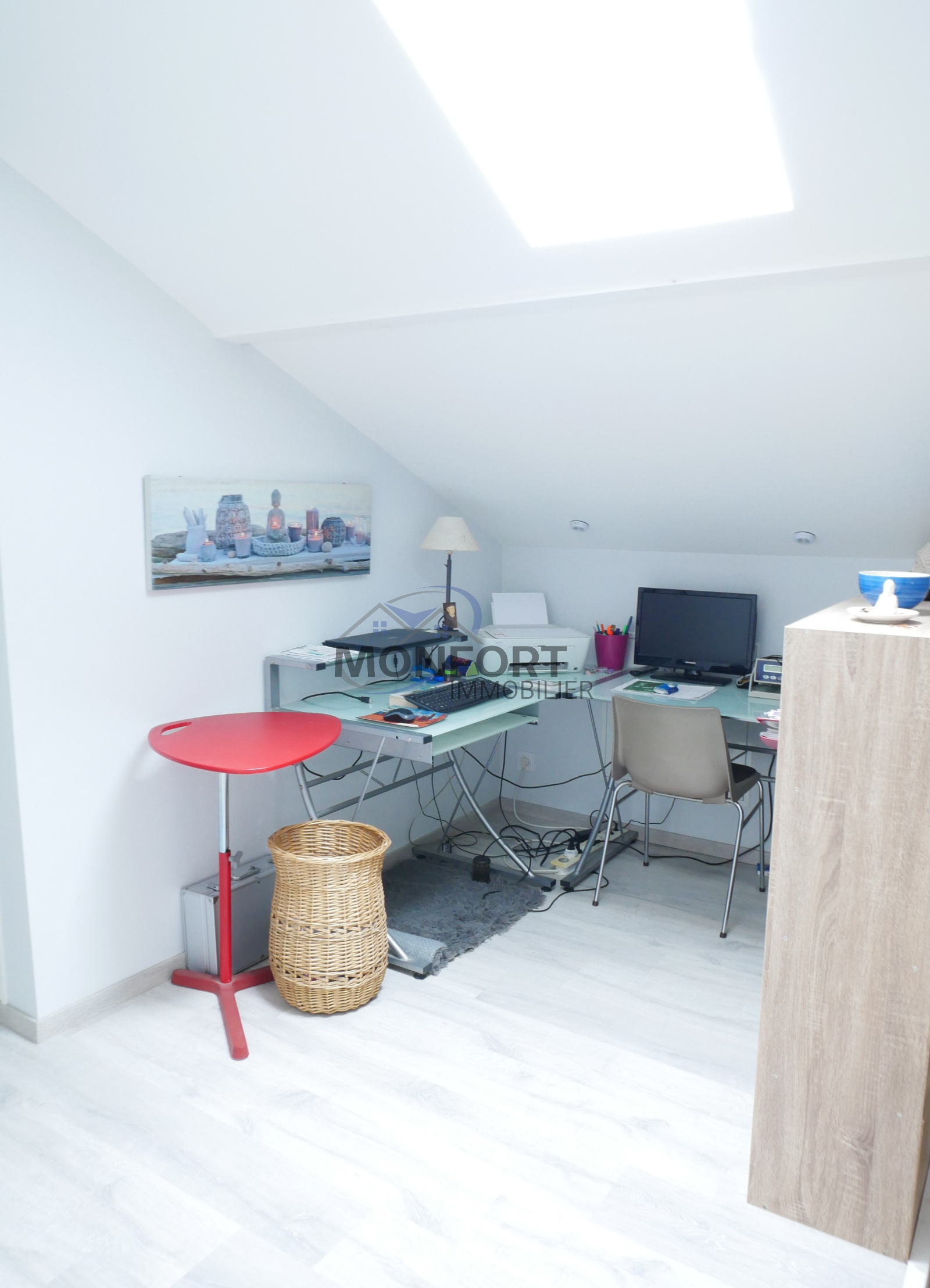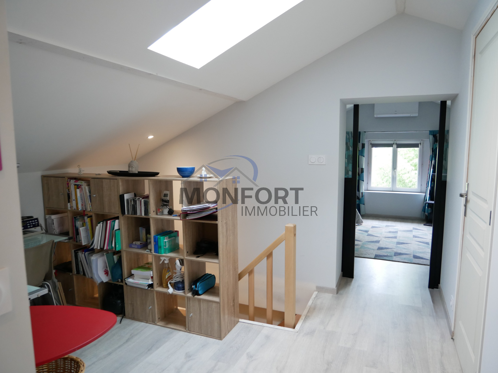 Étage : Un grand palier dessert une chambre spacieuse de 23 m², une salle d'eau et un WC séparé. Une porte permet d'accéder à une pièce de 27 m², offrant la possibilité de créer deux chambres supplémentaires selon vos besoins.