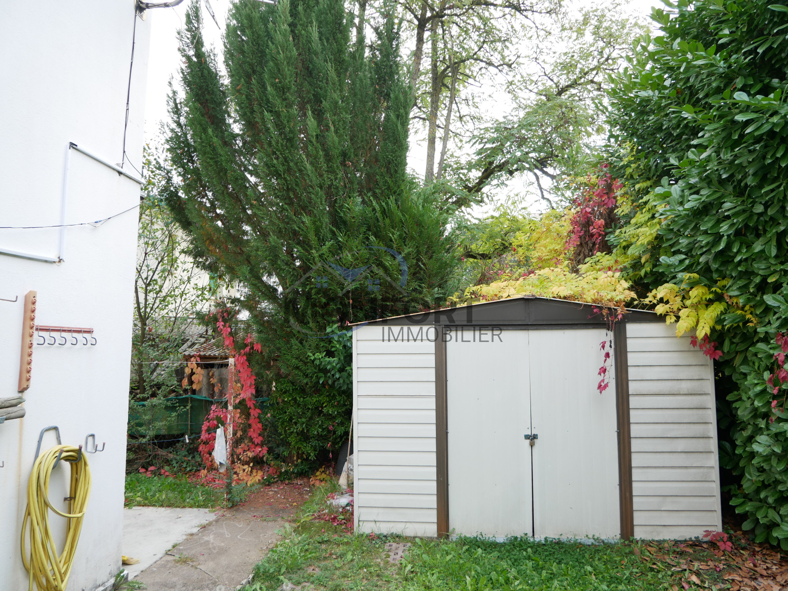 À l’extérieur, un petit jardin permet de profiter des beaux jours, et la maison bénéficie également d’un garage, un véritable atout en centre-ville.